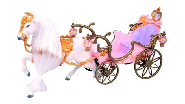 Vervoer je modepop als een prinses in deze grote open koets met een sierlijk paard.