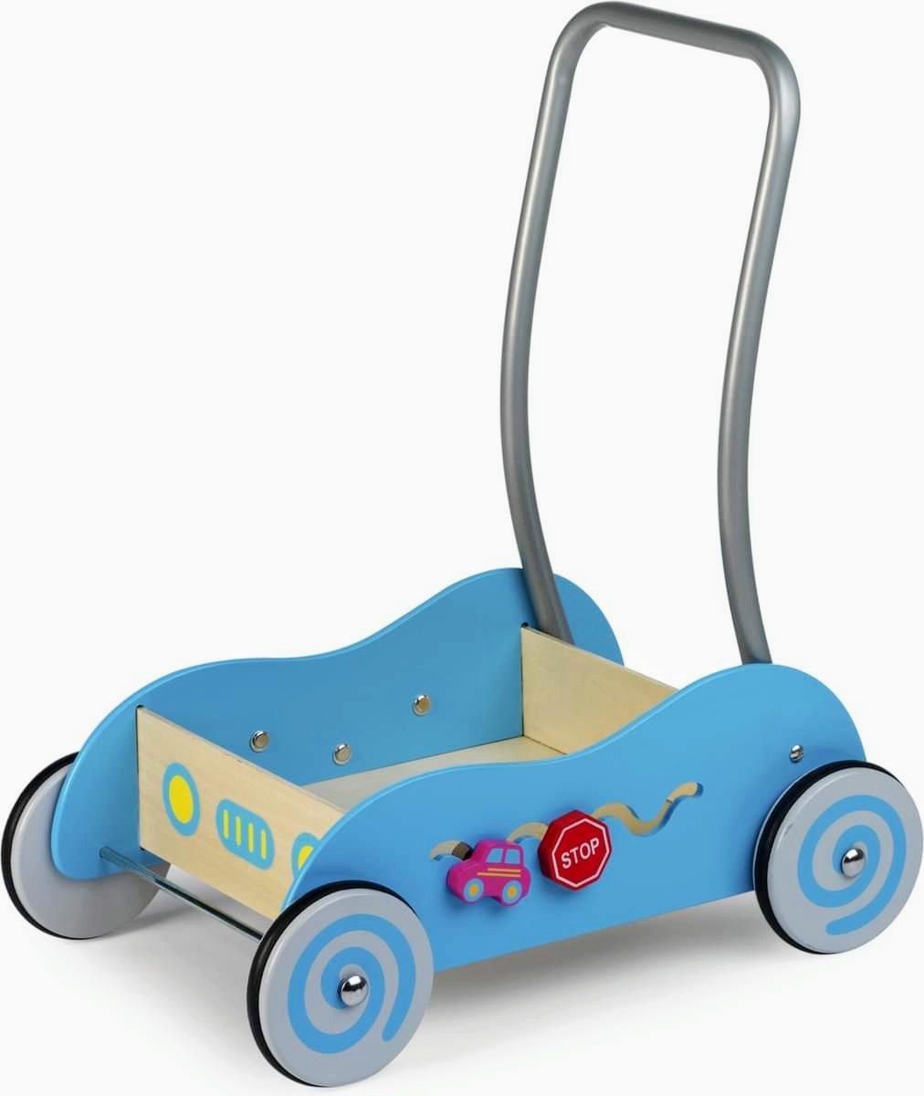 Met deze SIMPLY FOR KIDS duwwagen van hout kan de baby zich nu veilig verplaatsen en in zijn eigen tempo leren lopen. Ideaal om zijn lievelingsspeelgoed in te vervoeren. Met activiteiten aan de zijkant. Bij voorkeur binnen gebruiken.