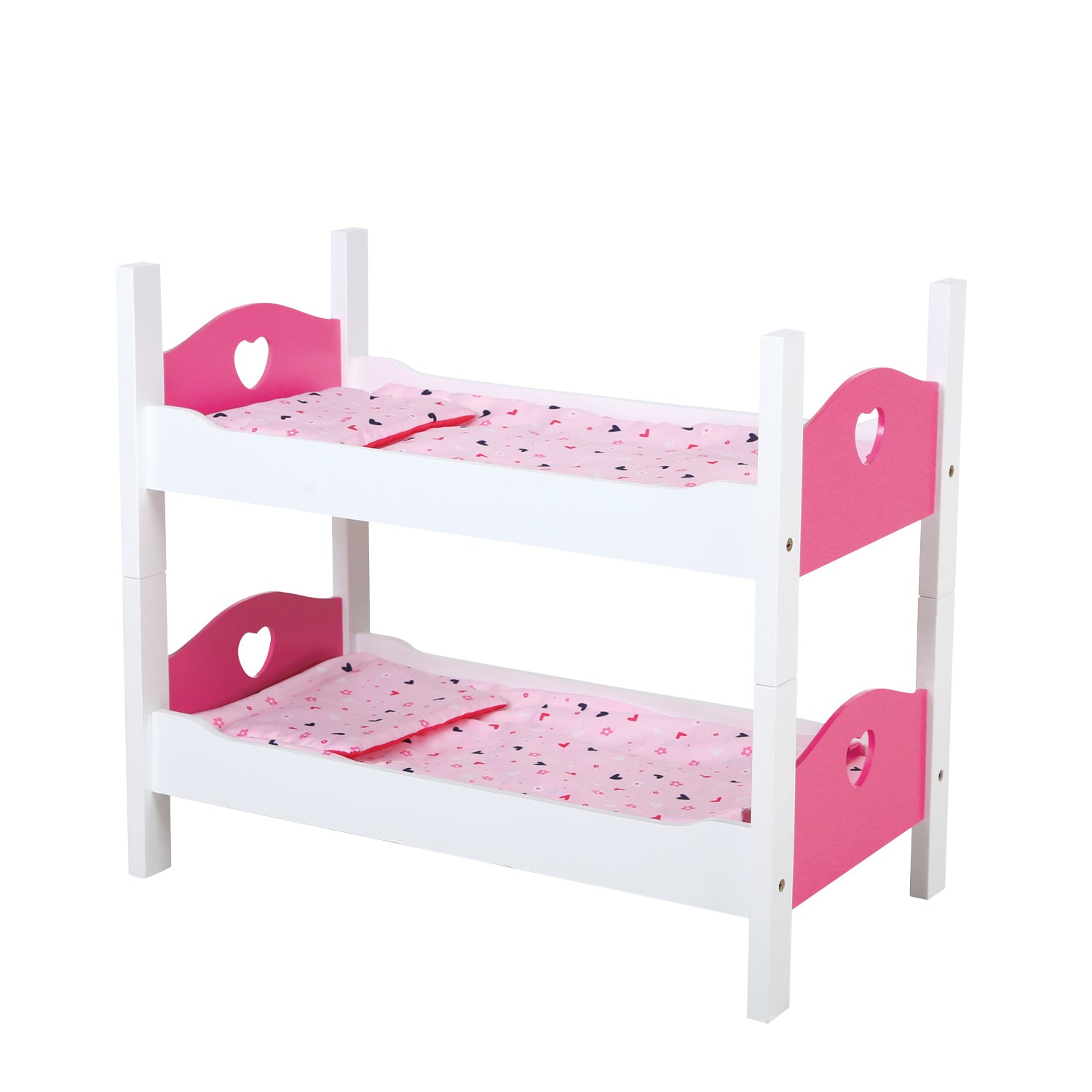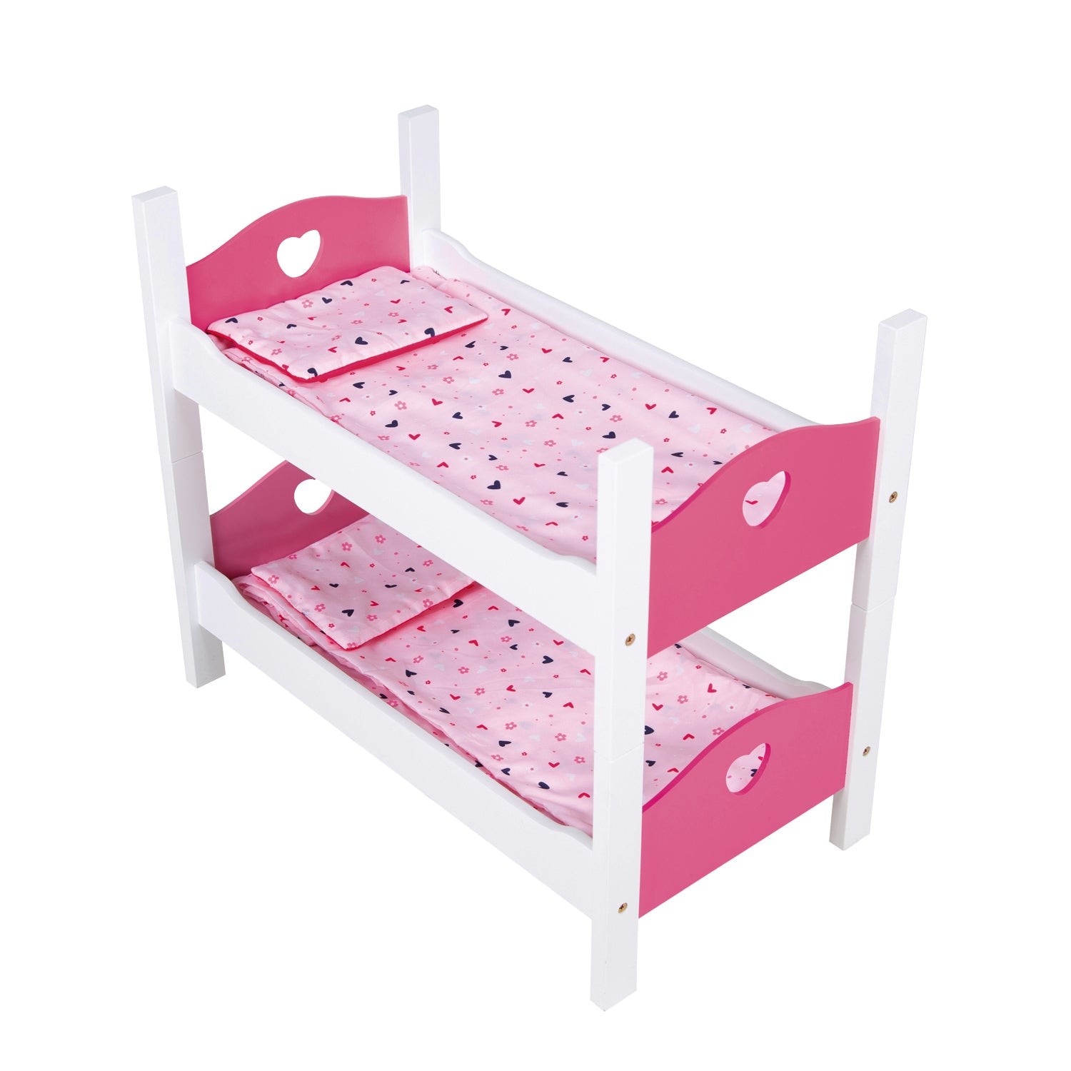 My Beautiful Dollsroom HOUTEN Poppen-Stapelbedin de kleuren Roze/Wit